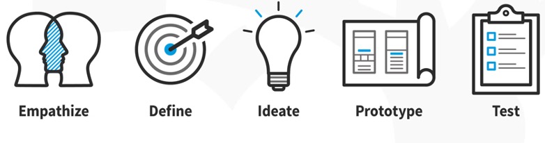 What I also like about this graphic is that it includes arrows leading back to previous steps. It is a visual representation that even though this process might appear to be a linear one, you can always go back and try something again if it didn’t work out for you. The prototype step even has two arrows. One going back to design and the other going all the way back to empathize. Myabe just that prototype idea didn’t work out. Or maybe the whole concept that was created through ideate and design needs to be redone. There is room for error.